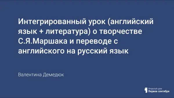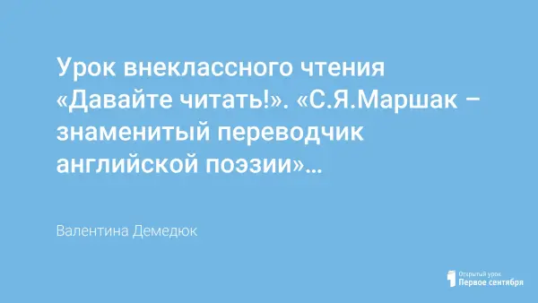 Задачи урока: познакомить учащихся с творчеством С.Я.Маршака, как переводчика английских стихов для детей; познакомить учащихся с особенностями поэтического перевода; формировать фонетические и лексические навыки; развивать творческие способности учащихся; поддержать интерес к изучению иностранного языка.