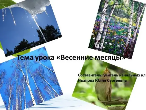 Урок окружающего мира во 2-м классе познакомит учащихся с весенними месяцами, сформирует умение различать признаки наступающей весны в живой и неживой природе, а также события в жизни людей весной со значением старинных названий весенних месяцев в языке народов своего края. Дети научатся выявлять признаки весенних месяцев по картинам русских художников, приобретут знания о празднике весенний Новый год в старину.