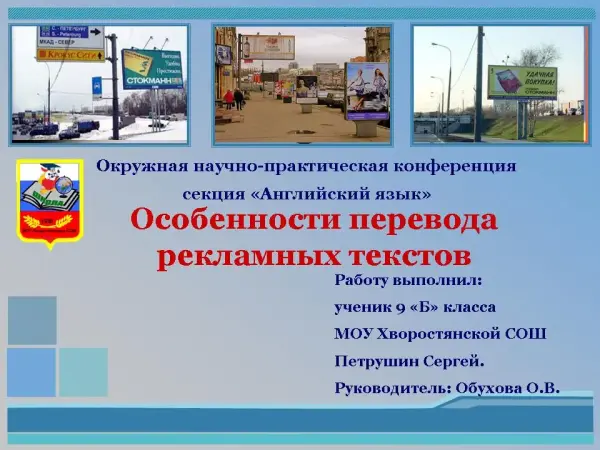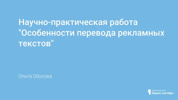 Работа посвящена особенностям перевода рекламного текста. Перевод рекламного текста, в отличие от перевода художественной литературы, несколько отличается по форме, языковым средствам, а также ярко выраженной коммуникативной направленности. Тема настоящей работы представляется актуальной, так как с развитием информационных технологий началось стремительное расширение переводческой деятельности именно лингвистического направления.