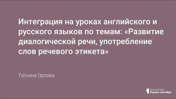 В представленной статье рассматривается вариант интеграции русского и английского языка на примере развития диалогической речи, применения фраз речевого этикета. Дается подробный теоретический материал по основным проблемам интеграции и фрагмент урока.