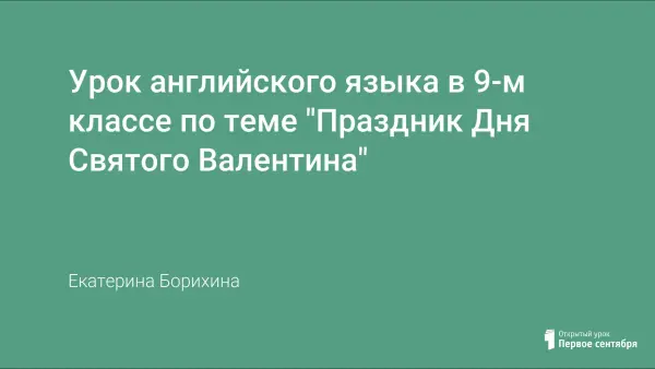 Целью урока в 9-м классе по УМК Enjoy English-9 Биболетовой М.З. является знакомство с культурой стран изучаемого языка, праздником Дня Святого Валентина, историей его возникновения и традициями его проведения. Материал урока способствует формированию у учеников уважительного отношения к своим близким (ознакомление с формами проявления внимания); формированию этического отношения между юношами и девушками в вопросах любви и дружбы; воспитанию убеждённости в приоритетности общечеловеческих ценностей.