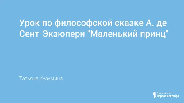 Урок по философской сказке А. де Сент-Экзюпери «Маленький принц». На изучение сказки по программе В.Я. Коровиной в 6-м классе отводится 2 часа. Урок (второй) – проблемный, изучения нового материала, который строится на основе работы с текстом с групповой формой работы и ИКТ.