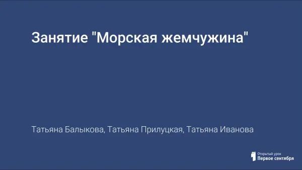 Цель занятия: дать представление об образовании жемчужин; учить высказывать предположения и делать простейшие выводы, излагать свои мысли понятно для окружающих; уточнять высказывания, помогать точно характеризовать предмет; расширить представление о свойствах и качествах предметов; развивать эстетическое восприятие.