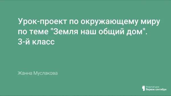 Заключительный урок-презентация проекта, который затрагивает проблемы: Каковы условия жизни на Земле? Как защитить окружающую среду от загрязнений? Какие проблемы экологии существуют на нашей планете? Урок формирует представление учащихся об экологической грамотности; развивает умение находить нужную информацию по данной теме; воспитывает гуманность.
