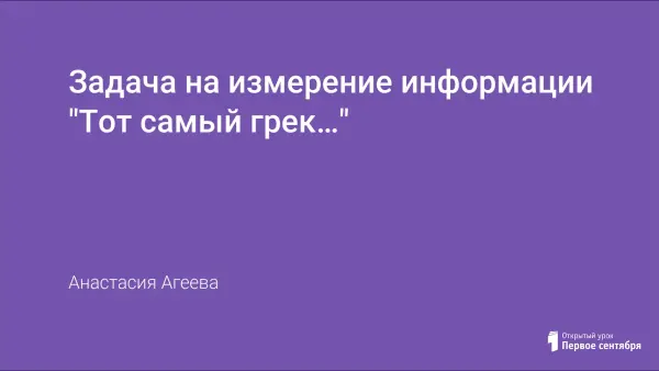 Урок закрепления материала по теме «Измерение информации» с помощью компетентностной задачи «Тот самый грек…» способствует усовершенствованию навыков применения формул для вычисления количества информации, а также применения возможностей сети Интернет для решения поставленных задач.