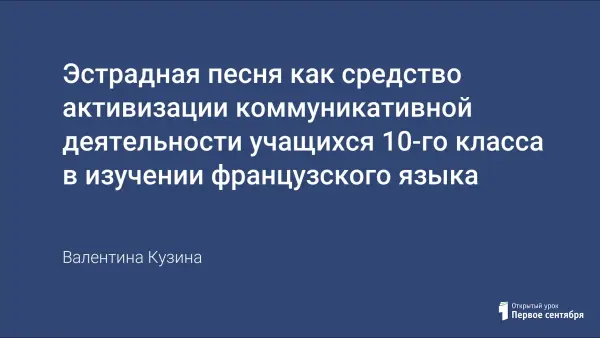 Песни представляют собой прекрасный культуроведческий материал, активизируют такие виды коммуникативной деятельности, как аудирование и чтение. Автор обосновывает эвристические методы работы с эстрадной песней в изучении французского языка, определяет место коммуникативных умений в структуре интеллектуальных умений по иностранному языку и систематизирует накопленный материал для работы с песней.