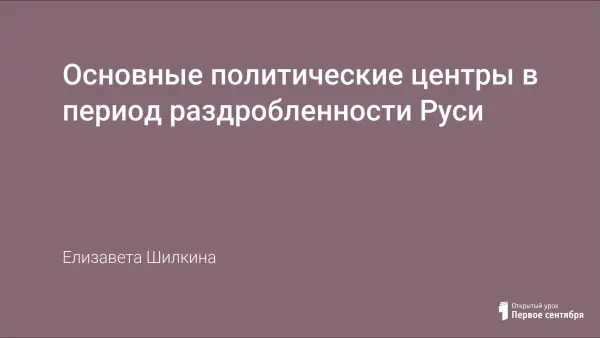 Цель урока: формирование представлений о политической раздробленности Древнерусского государства и особенностях развития главных политических центров Руси.