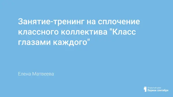 Данное занятие-тренинг проводится с детьми подросткового возраста (7-8-е классы). Оно помогает определить статус учащегося и увидеть роль каждого в улучшении психологического климата класса. Цель: сплочение классного коллектива. Создание благоприятного психологического климата, преодоление барьера в межличностных отношениях, развитие коммуникативных навыков.