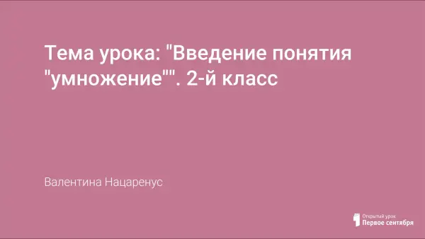 Урок во 2-м классе по программе И.И. Аргинской направлен на овладение понятием «умножение» как новой формой записи сложения одинаковых слагаемых. Урок является первым в разделе «умножение». Прилагается презентация.