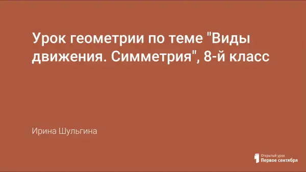 На уроке рассматриваются такие виды движения, как симметрия относительно точки и относительно прямой. Презентация существенно облегчает изложение нового материала и восприятие его учащимися. На слайдах показаны все этапы построения точек и фигур, симметричных данным, приведены примеры фигур симметричных относительно точки и прямой, рассматриваются примеры симметрии в окружающем мире. Основное время на уроке отводится на обучение учащихся умению построть симметричные фигуры.