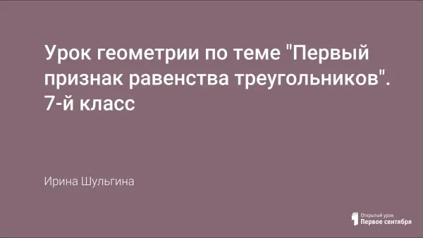 Изложение доказательства первого признака равенства треугольников (по двум сторонам и углу между ними) по учебнику А.В. Погорелова занимает на уроке достаточно много времени и сложно для восприятия семиклассников. Презентация помогает учащимся наглядно «увидеть» доказательство теоремы и ее применение для решения задач.