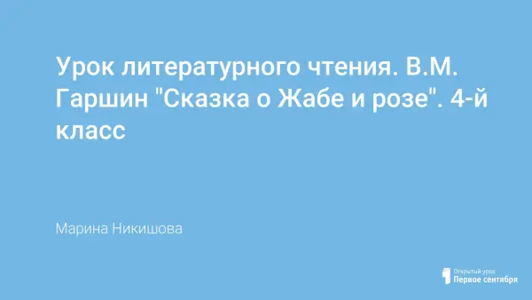 Fнализ произведения В.М.Гаршина «Сказка о жабе и розе» помогает учащимся осмыслить мир как воплощение добра и зла, счастья и сострадания; учит видеть прекрасное, сделать прекрасное частицей своей жизни; формироует понятия счастье, смысл жизни, способность к самоотдаче, добро, зло, красота. Га протяжении всего урока идет работа над развитием речи, развитием воображения и наблюдательности.