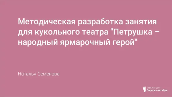 Занятие позволяет педагогу в занимательной игровой форме познакомить воспитанников с главной куклой ярмарочных представлений на Руси – Петрушкой. Петрушка – кличка балаганной куклы, русского шута, потешника, остряка в красном кафтане и колпаке. Занятие проводится в форме экскурсии по кукольному музею, где всё посвящено его биографии, помогает детям расширить знания по истории кукольного театра, развивать творческие способности.