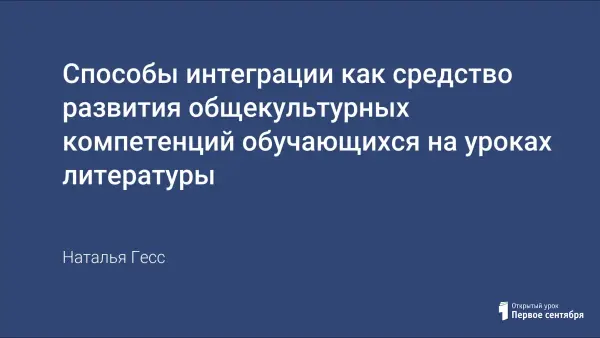 В работе используются различные способы интеграции, которые позволяют систематизировать материал, что обогащает возможности предмета «Литература», делает этот процесс целенаправленным и помогает успешно решить проблему развития активной познавательной деятельности обучающихся. Интерпретация литературного произведения в других видах искусств позволяет выйти за рамки художественного произведения, формируя культурный кругозор и содействуя глубокому пониманию литературного произведения.