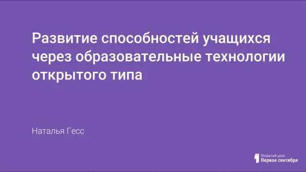 Требования к современной школе нацеливают каждого учителя на поддержку познавательного интереса своих учеников, формирование потребности и способности личности к саморазвитию, создание максимальных условий к перерастанию потенциальной одарённости в развившуюся. В основу такой работы должны быть заложены принципы образовательных технологий открытого типа: дифференцированное, развивающее, проблемное обучение, развитие критического мышления, проекты, дебаты и творческие мастерские.