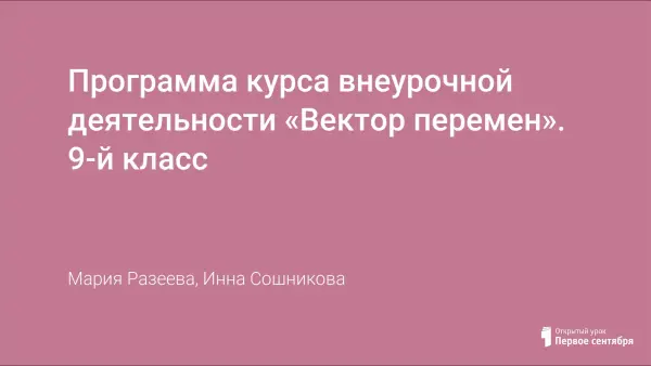 Программа курса внеурочной деятельности «Вектор перемен». 9-й класс