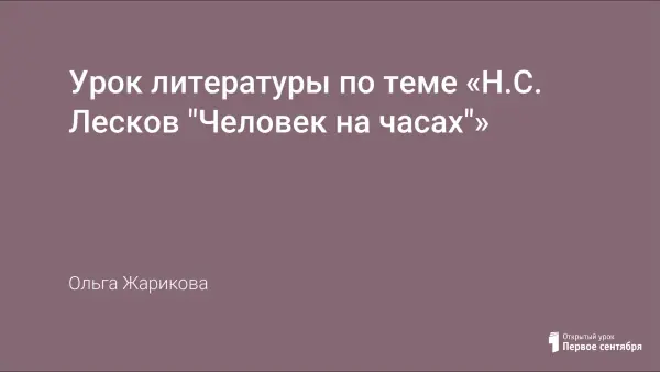 Урок посвящён изучению литературы XIX века, творчеству Николая Семеновича Лескова, рассказу «Человек на часах». Писатель всегда стремился убедить читателей в том, что праведничество – естественное и закономерное явление русской жизни и в этой жизни с её пороками и несправедливостями, искал и находил праведных людей. Урок построен на понимании авторского текста, умении работать со словом индивидуально и при обучении в сотрудничестве, умении видеть эпоху, характеризовать лиц исторической эпохи.