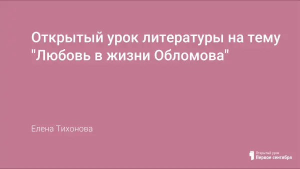 Открытый урок литературы на тему "Любовь в жизни Обломова"
