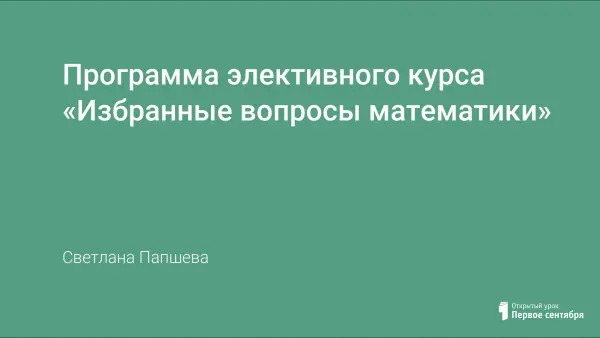 Программа элективного курса «Избранные вопросы математики» рассчитана на одно полугодие для подготовки учащихся 11-го класса к единому государственному экзамену, продолжения образования в высших учебных заведениях. Элективный курс имеет практико-ориентированную направленность.