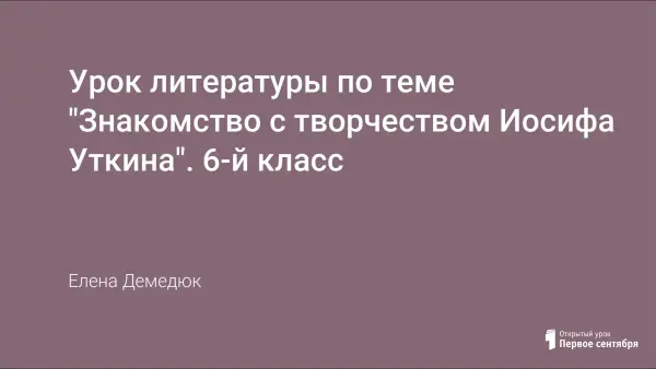 Урок по литературе для 6-го класса по программе «Писатели Восточной Сибири», на котором ребята знакомятся с некоторыми фактами из жизни иркутского писателя Иосифа Уткина, а также с его произведениями. Урок сопровождается слайдовой презентацией. Также на уроке звучит песня на стихи И.Уткина.