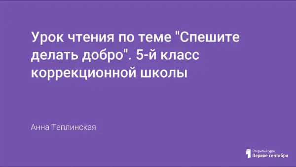 Урок чтения по теме "Спешите делать добро". 5-й класс коррекционной школы