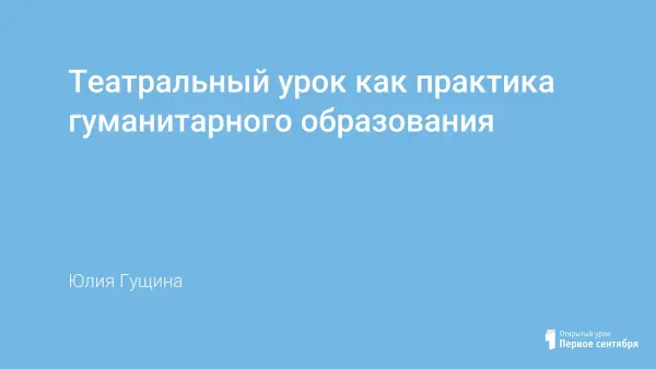 Театральный урок как практика гуманитарного образования представляет собой складывающуюся систему уроков, направленную на реализацию в течение всего учебного года и включающую 2–4 театральных урока в год. «Театральный урок» позволяет закрепить первичные знания по теории литературы о театре, приобретенные практические навыки посещения театра и, интегрируя имеющийся опыт, вывести гимназистов на новый уровень осмысления себя, событий.