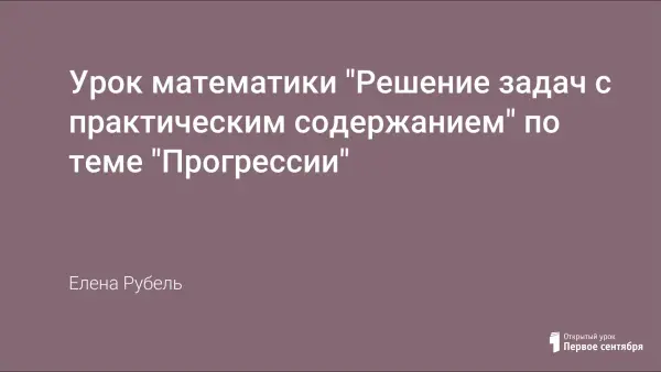 Цель урока: приобщить учащихся к повышению математической культуры, научить применять свои знания в практических ситуациях. В работе представлены комплекты тщательно подобранных комбинированных задач, при составлении математических моделей которых применялись формулы для арифметической и геометрической прогрессий. Этот урок можно проводить в 9-м классе как итоговый после изучения темы «Прогрессии».