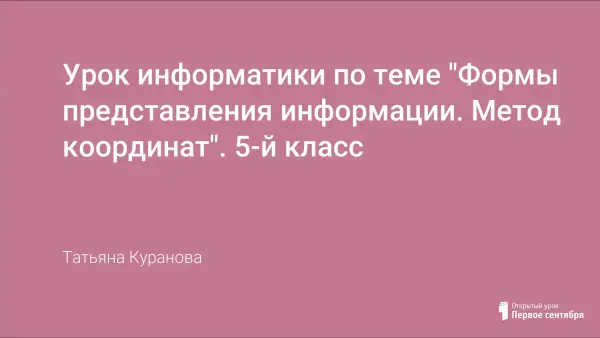 В ходе урока учащиеся знакомятся с основными понятиями «код», «кодирование», «графический способ кодирования», «числовой способ кодирования», «символьный способ кодирования», учатся работать с методом координат.