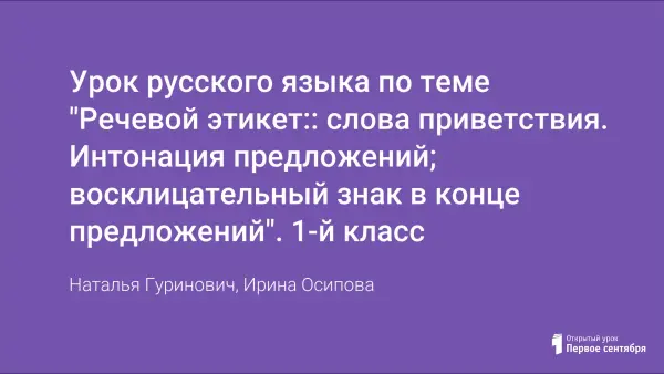 Урок русского языка по теме "Речевой этикет:: слова приветствия. Интонация предложений; восклицательный знак в конце предложений". 1-й класс