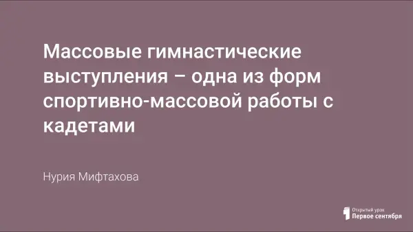 Массовые гимнастические выступления и спортивные праздники школьников - одна из форм привлечения детей и подростков к занятиям физическими упражнениями. Массовые гимнастические выступления способствуют не только физическому развитию ребят, но и воспитанию музыкальной культуры и красоты движений.