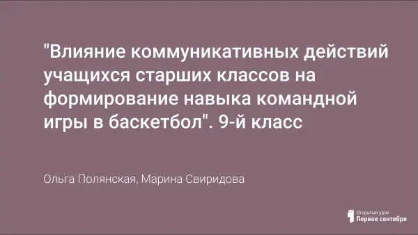 "Влияние коммуникативных действий учащихся старших классов на формирование навыка командной игры в баскетбол". 9-й класс