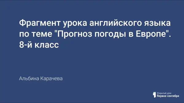 Цели урока: закрепить лексические единицы по теме «Погода», закрепить употребление конструкции «It is…», сформировать навыки употребления лексических единиц в диалогических высказываниях с опорой на вопросы; проконтролировать знания лексического материала; совершенствовать коммуникативную компетенцию учащихся на основе навыков владения лексическим материалом по теме; повторить грамматический материал в подстановочном упражнении.