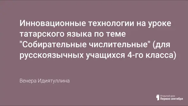 На уроке использованы информационные и здоровьесберегающие технологии, в интересной форме обобщаются знания учащихся, развивается диалогическая и монологическая речь. Учащиеся повторяют количественные, порядковые числительные, и изучают собирательные числительные. Уроки такого типа закрепляют полученные знания по другим изучаемым темам.