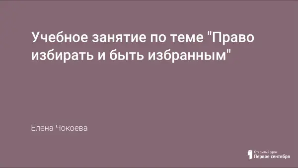 Занятие призвано продолжить знакомство с одним из наиболее важных политических прав граждан РФ – правом на участие в управлении делами государства, направлено на повышение интереса к институту выборов школьников; воспитание у подростков активной жизненной позиции.