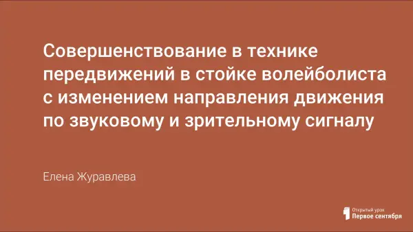 Цель урока: совершенствование в технике передвижений в стойке волейболиста с изменением направления движения по звуковому и зрительному сигналу.