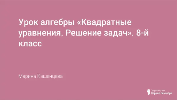 Цель урока: сформировать целостное представление о способах и методах решения квадратных уравнений разных видов и применении квадратных уравнений для решения задач; развивать навыки формализации условия задачи, алгоритмизации решения.