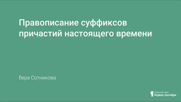 Цель урока: познакомить с правописанием гласных в суффиксах действительных причастий настоящего времени.