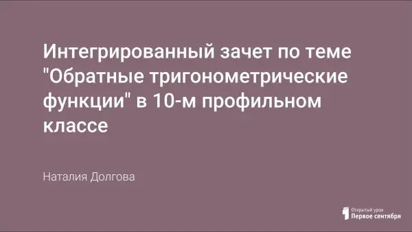 Предлагаю очень увлекательный вариант контроля знаний в 10-м классе после изучения темы «Обратные тригонометрические функции». Провожу его в профильных классах: физико-математических и информационно-технологических. Билет состоит из трех заданий. Продолжительность зачета – по 2 часа на каждую из двух подгрупп класса.