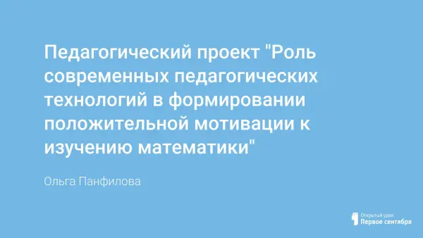 Представлен педагогический проект, в котором описывается опыт работы учителя математики с применением современных педагогических технологий с целью в формировании положительной мотивации к изучению математики. Ведь известно, что мотивация – это один из главных приемов повышения качества по предмету.