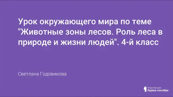 Цели урока: познакомить учащихся с животными зоны лесов; повторить и углубить знания о природных сообществах леса, о фотосинтезе, о роли леса в жизни людей.