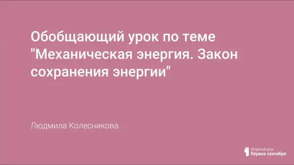 Урок повторения и обобщения теоретических знаний по теме урока и закрепление навыков по применению закона при решении задач. На уроке идет исследование выполнения закона сохранения энергии с помощью компьютерного эксперимента. Урок способствует передаче обучающимся деятельностных способов работы с информацией; формированию культуры мышления, целостной картины мира.