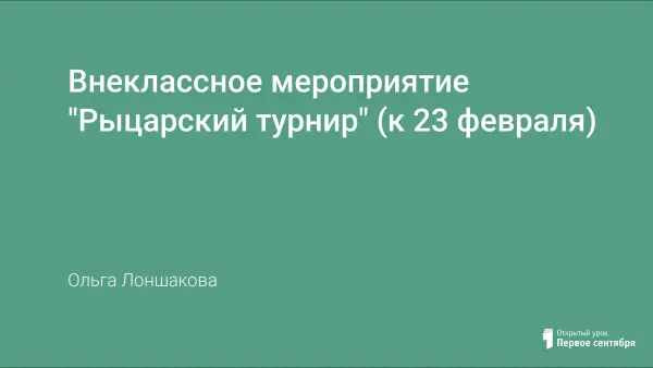 Внеклассное мероприятие посвящено тем, кто увековечил в памяти народа прошлое и настоящее Армии – защитникам Отечества. Турнир проводится среди участников 1–5-х классов с использованием эмблем и девиза для каждой команды. Мероприятие способствует развитию и выявлению творческих и спортивных качеств, созданию праздничного настроения, приобщению к здоровому образу жизни. Поздравляем всех тех, кто уже прошел службу, и тех, кому еще предстоит ее нести.