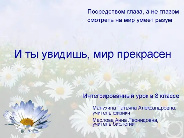 Интегрированный урок (биология + физика) по теме "И ты увидишь, мир прекрасен". 8-й класс
