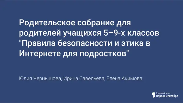 Родительское собрание для родителей учащихся 5–9-х классов "Правила безопасности и этика в Интернете для подростков"