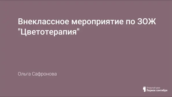Внеклассное мероприятие проводится в форме беседы. В ходе урока учащиеся знакомятся с влиянием цвета на здоровье человека; знакомятся с методом лечения – цветотерапией; историей цветотерапии; выполняют практическую работу.