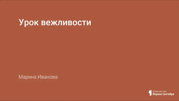 На уроке вежливости особое внимание уделяется словам, без которых человека нельзя назвать вежливым: спасибо, пожалуйста. В игровой форме ребята вспоминают и другие вежливые слова. Основной целью урока является знакомство с вежливой формой обращения ко взрослым людям.