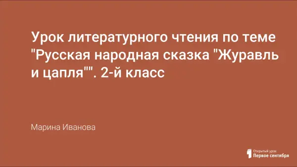 Урок литературного чтения, на котором на примере русской народной сказки "Журавль и цапля" дети учатся анализировать содержание художественного произведения, сравнивают русскую народную сказку и мульципликационный фильм. На уроке развивается устная речь учащихся, образное мышление, умение анализировать, обобщать; воспитывается нравственность, формируется умение "вдумчивого чтения" произведения.