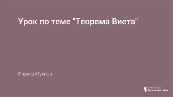Обобщение и систематизация основных знаний и умений по теме «Решение квадратных уравнений» происходит в игровой развлекательной форме. В ходе урока учащимся предстоит «открыть» теорему Виета, доказать её и научиться применять при решении квадратных уравнений.