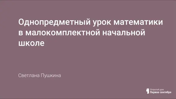 Урок математики в 1‒3-м классах малокомплектной начальной школы построен на основе деятельностного метода обучения. 1-й класс работает по УМК "Начальная школа 21 века" по новому Федеральному Государственному Стандарту, 3-й класс работает по УМК "Школа России". На уроке формируются универсальные учебные действия.