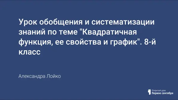 Урок является уроком обобщения и систематизации знаний по теме алгебры 8-го класса «Квадратичная функция, её свойства и график» с использованием мультимедийной презентации и возможностей SMART Notebook10.
